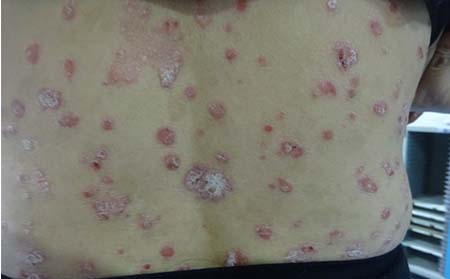 银屑病是一种常见的慢性,复发性,炎症性的皮肤病。其特征是出现大小不等的丘疹,红斑,表面覆盖着银白色鳞屑,边界清楚,可以发于头皮、四肢伸侧及背部。