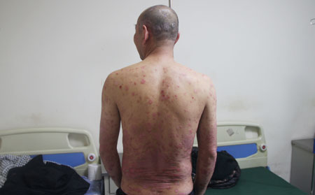 4.牛皮癣患者继发红皮病者称红皮病型银屑病 牛皮癣;皮疹有少量渗液,附有湿性鳞屑。或初起为小脓疱,伴有发热等症状者称为脓疱型银屑病;合并关节病变者称为关节型银屑病。