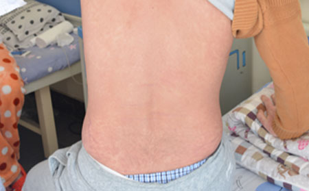 泛发型:多起病急,常伴寒战、发热等全身症状,皮疹可在数天至数周内遍布全身。初起为炎性红斑,继而在红斑上发生密集的、针头至粟米大小的、浅在的无菌性脓疱。部分可融合或增大呈脓湖状。常因脓疱破裂而糜烂。脓疱在数天后干涸。皮损成批出现,呈周期性发作。自觉瘙痒或疼痛。可累及全身皮肤,但以四肢屈侧及皱襞处多见,口腔粘膜及甲床处可受累。